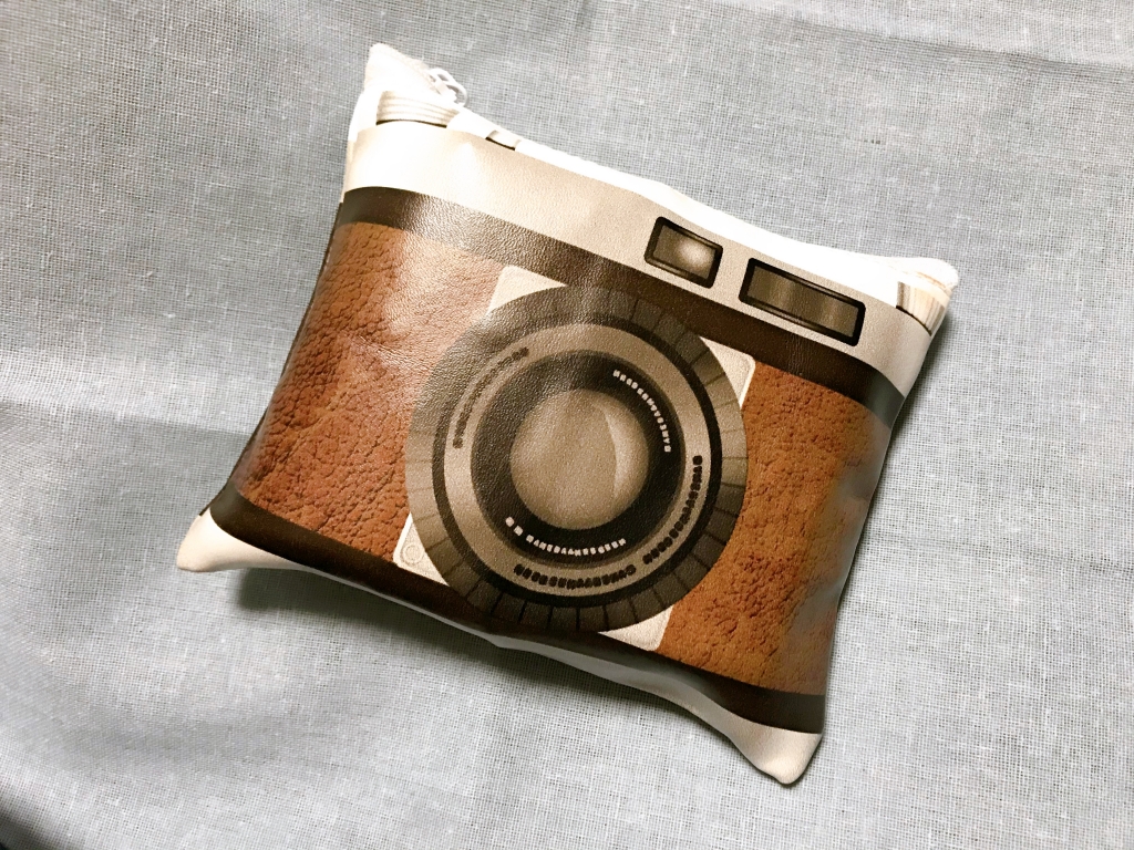色々入れたり出したり悩んだりした結果、サイズ的に最も良かったので死蔵していたカメラ柄のフラットポーチを使うことにしました。