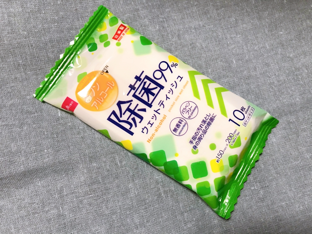 このご時世なので除菌スプレーは持っているんですが念の為。あとスプレーの方がアルコールなのでウェットティッシュはノンアルコールのにしました。両方あった方が便利ですしね。