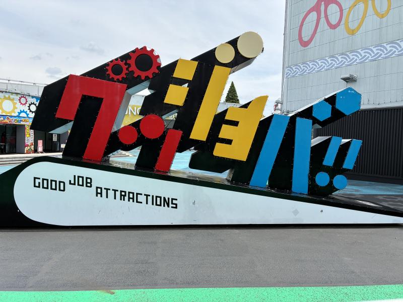 まず特典受け取りの為にフラッグストリートの乗り物券売り場に行った後にスタンプラリーの用紙を買う為、グッジョバ!!エリアに向かいました。