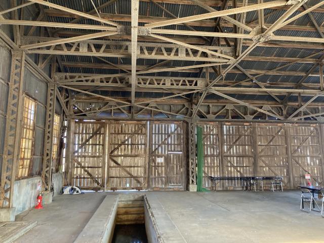 受け付けはこの自動車車庫内にあります。この建物も当時のものらしいです。