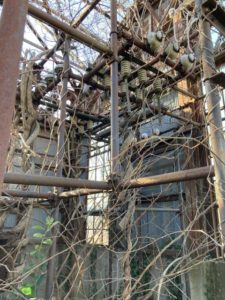 人が自然を利活用し作り上げる建築や文明というものが好きなのですが、その建築物や文明が朽ち自然に取り込まれて行く様も好きなんだなぁと設備に蔦が巻き付いている様子を見て思いました。