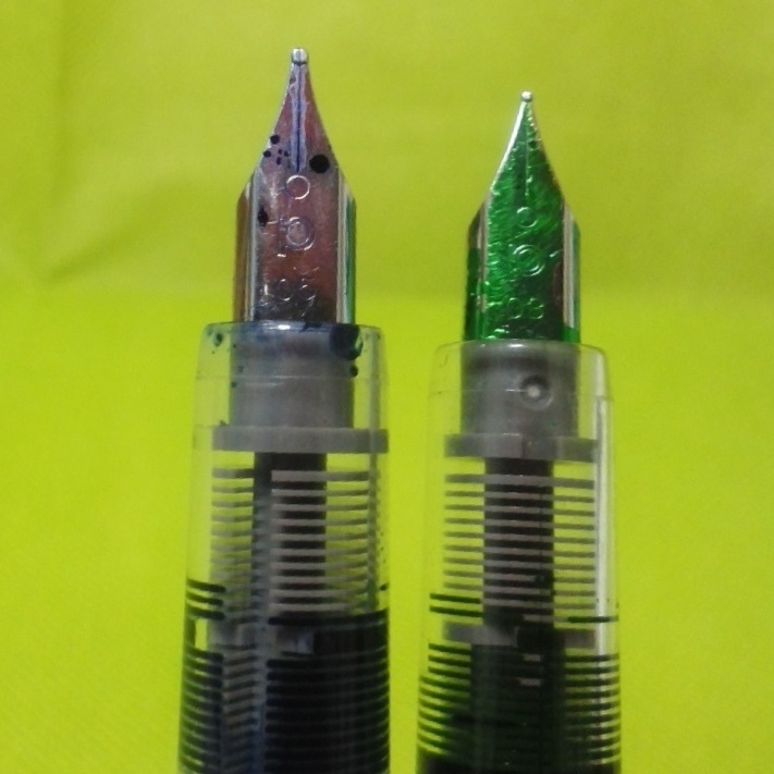 これで見た目は普通の万年筆のペン先になっただけなんですが、何が起きたのかきれいに色をはがしてからペン先が乾くようになってしまって難儀しました。