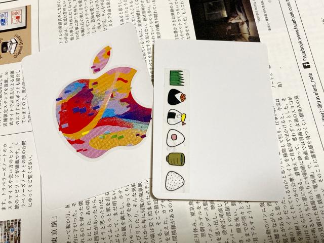 クラフトファイルのポケットに入っているのはiTunes Cardのリンゴが貼ってあるシール台紙をちょっと切ったものです。