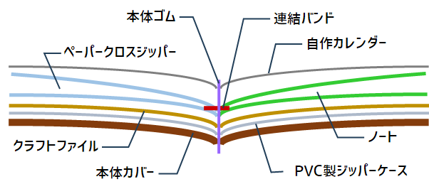 という訳で結論から。今のトラベラーズノートの構成の図解がこちらです。