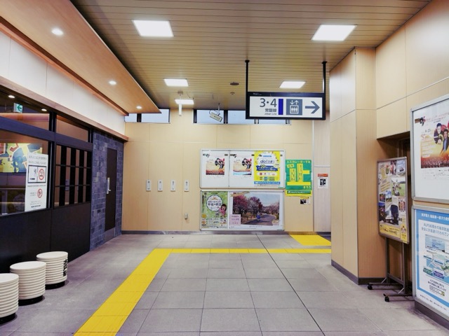 3・4番線のエスカレーター横、ベックスコーヒーの奥なので、水戸駅から電車に乗ろうとする動線で考えると分かりにくいポイントなんですが、東京方面から水戸駅に来て改札に向かうと考えると目につきやすいポイントかも。