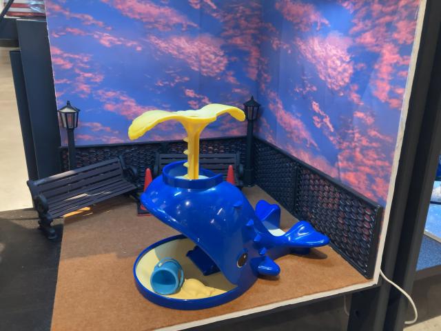 近くにキャラクターグッズ(アイマスは無かった)やぬいぐるみの入るバッグ等を売っている所謂推し活グッズコーナーがありまして、そこの一角がぬいぐるみ用のフォトスポットになっていました。