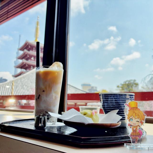 雷一茶さんの2階の濃茶茶寮 一茶さんで甘味頂いたんですがスカイツリーと五重塔が一緒に見える感じになんとなくキャシーを感じて良かったです。
